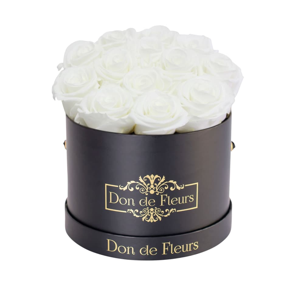 Price: $199.00Small Round Preserved Rose Box-Black Classic Box-White